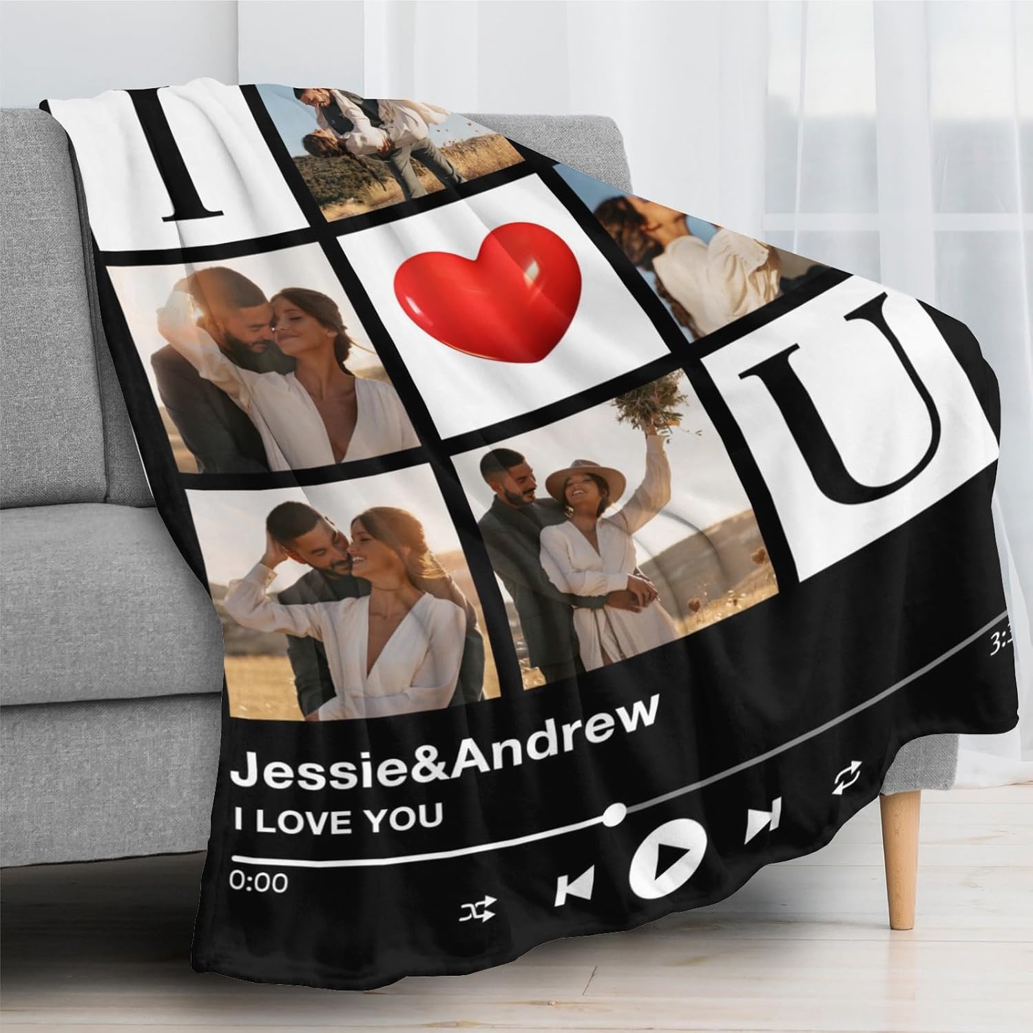 AMAZING PERSONALIZED GIFT - Spotify music song? Custom photo Blanket? a photo will capture your best moments and be a valuable and enjoyable gift for your loved ones.These personalized throw blankets with songs and photos are such such a gift would be appropriate for valentine, Bridal Shower Gifts for Bride to Be, christmas, anniversary, wedding, birthday for wife, husband, boyfriend, girlfriend,couples lovers or even a perfect mother's day or father's day gift for parents grandparents.