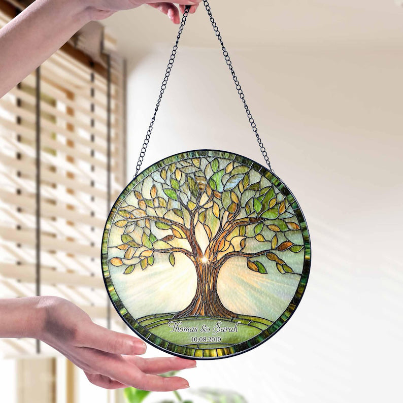 Personalized Tree of Life Glass Suncatcher, Custom Names & Date Wedding Anniversary Gift, Wedding Keepsake for Her, Anniversary Window Decor
