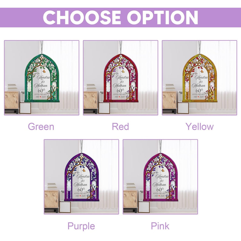 Personalized Wedding Anniversary Stained Glass Suncatcher, Custom Anniversary Keepsake for Couples, Flower Gate Window Decor, Gift For Lover