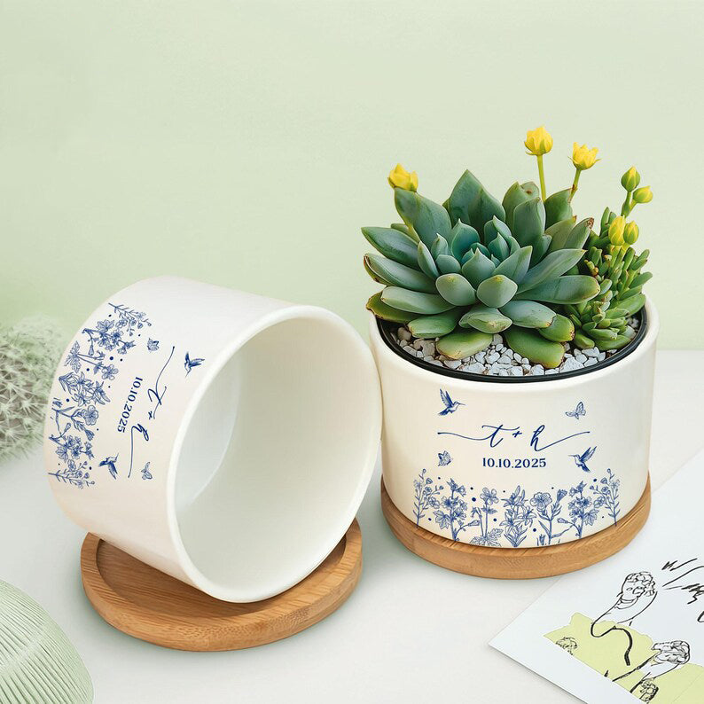 This personalized plant pot is not included with plant, you can buy it in nearby store.