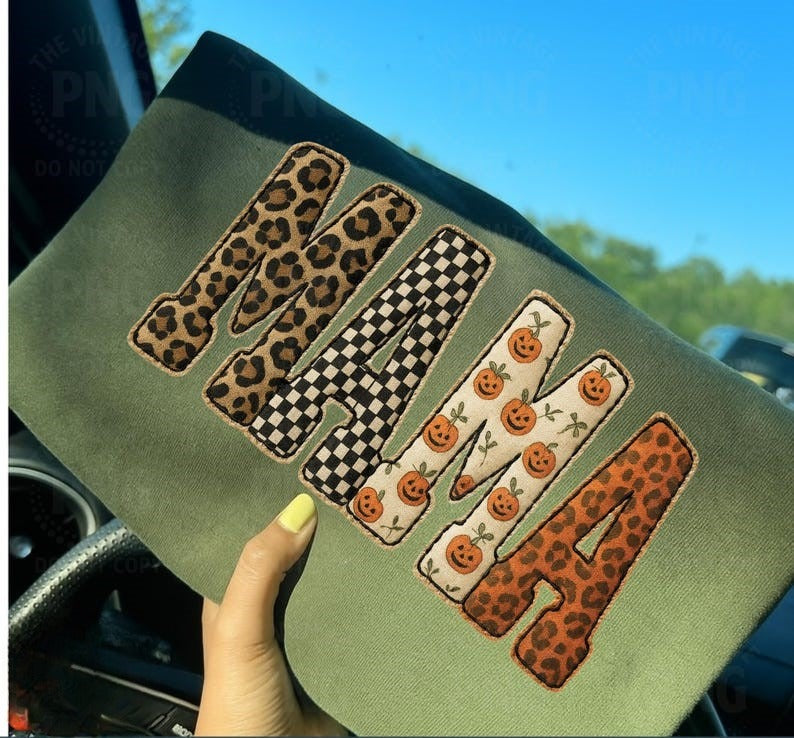 Fall Mama T-Shirt, Halloween Patchwork Letters Clipart, Pumpkin Leopard Checkered Shirt, Cozy Autumn Shirt