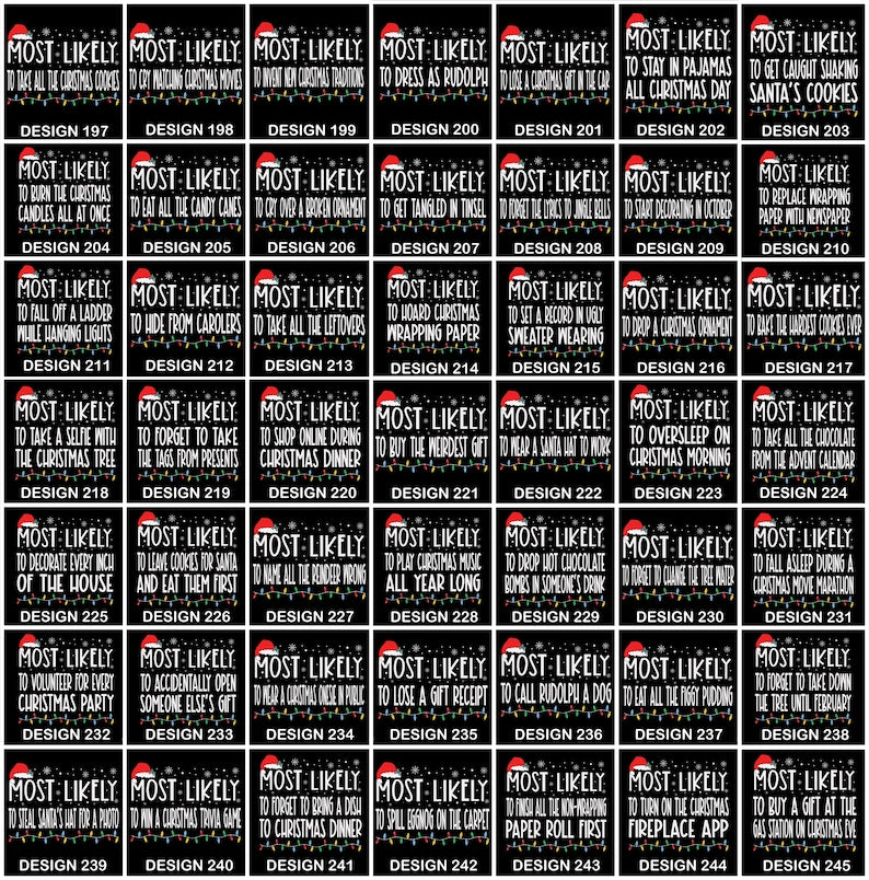 Funny Christmas Most Likely To Shirts: Custom Xmas Family Matching Funny Christmas Party Tees, Very Mery Christmas Shirts, Funny Quote Top