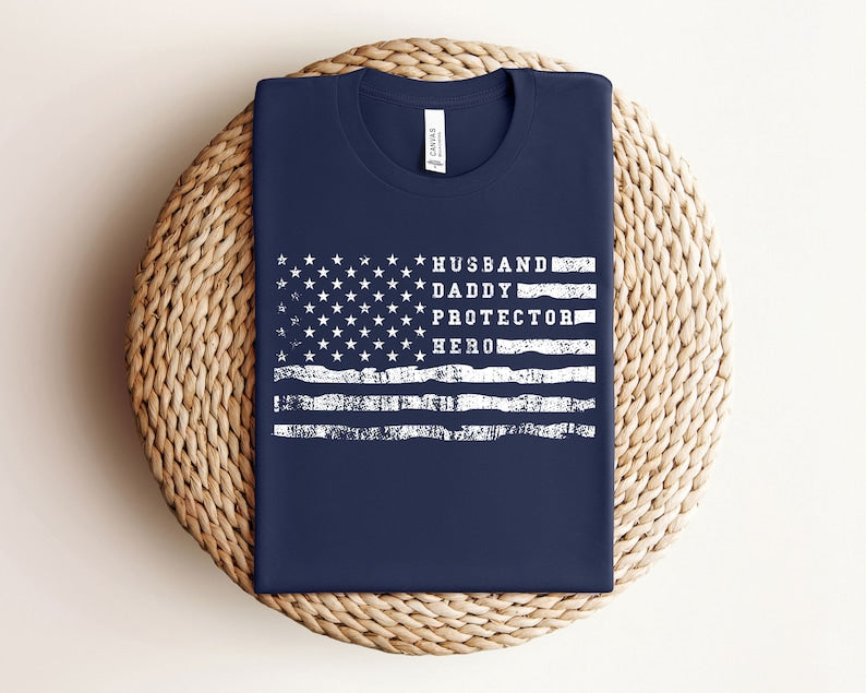 Husband Daddy Protector Hero Shirt - Father's Day Shirt - Patriot Dad Shirt - American Flag Dad Shirt - Gift for Husband - Father's Day Gift