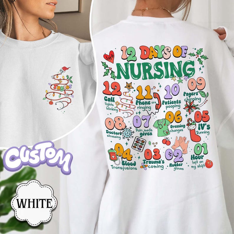 Custom 12 Days of Nursing Sweatshirt: Christmas Holiday Nurse Gift
