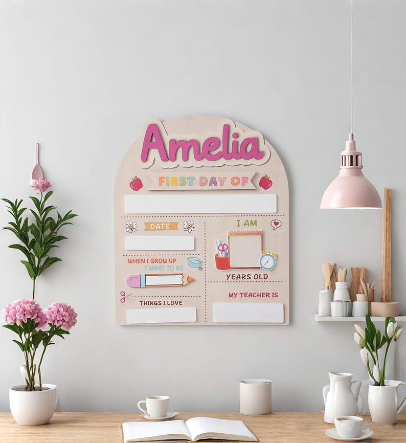The sign features a beautiful daisy design and a convenient dry erase surface, making it reusable year after year. Simply wipe it clean and customize it with your child's grade, school name, and date. It's a personalized keepsake that will bring a smile to your face every time you see it.