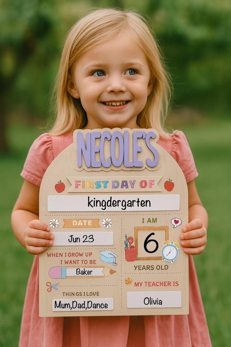 Introducing our delightful Daisy Style First Day of School Dry Erase Sign! Crafted with love from sturdy 1/4" maple wood and adorned with charming acrylic accents, this sign is a perfect way to capture your child's first day of school memories.