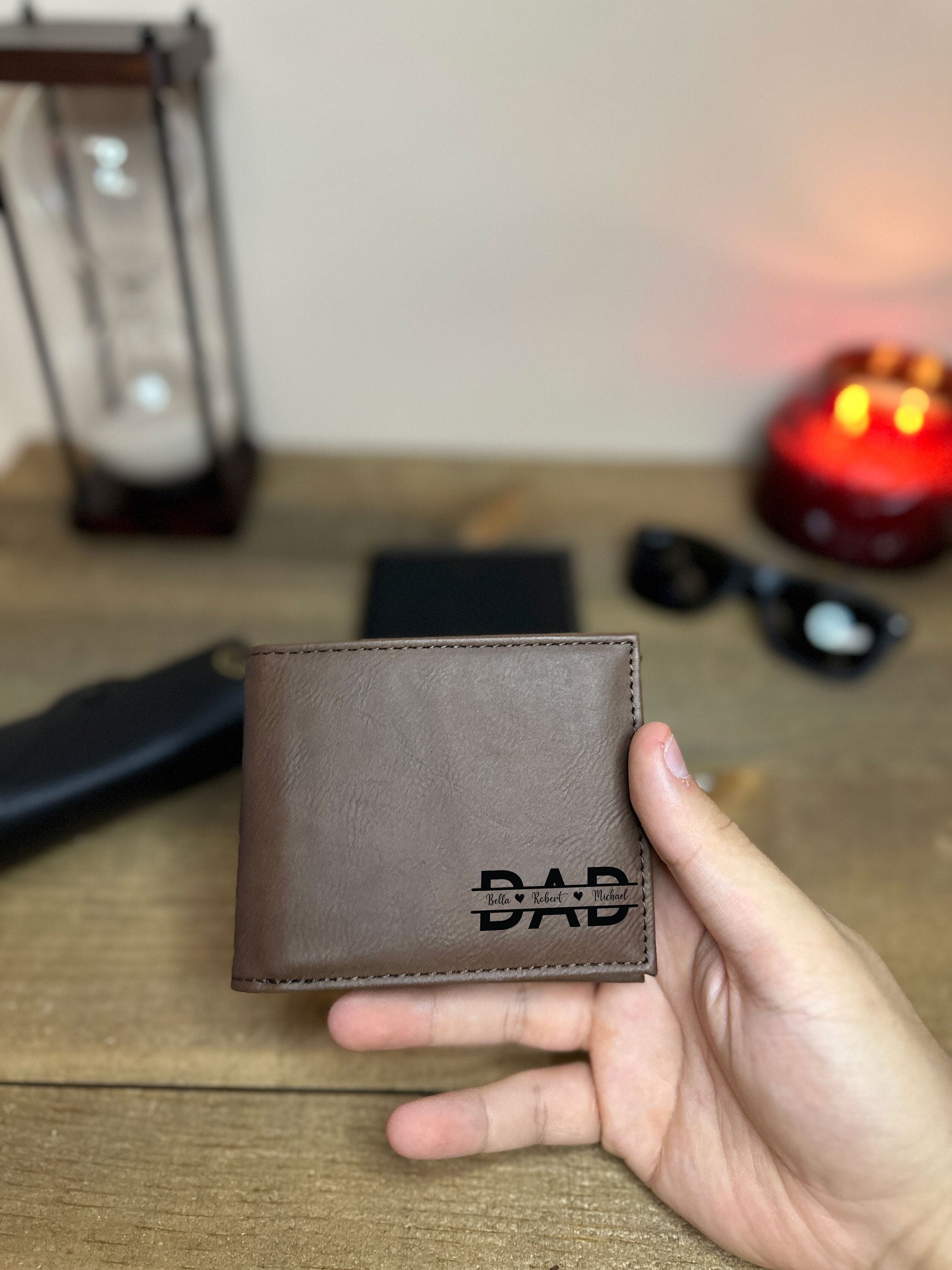 Dad Leather Wallet With Children Names, Custom Leather Wallet, Gift For Father's Day, Minimalist Wallet, Handmade Men's Wallet