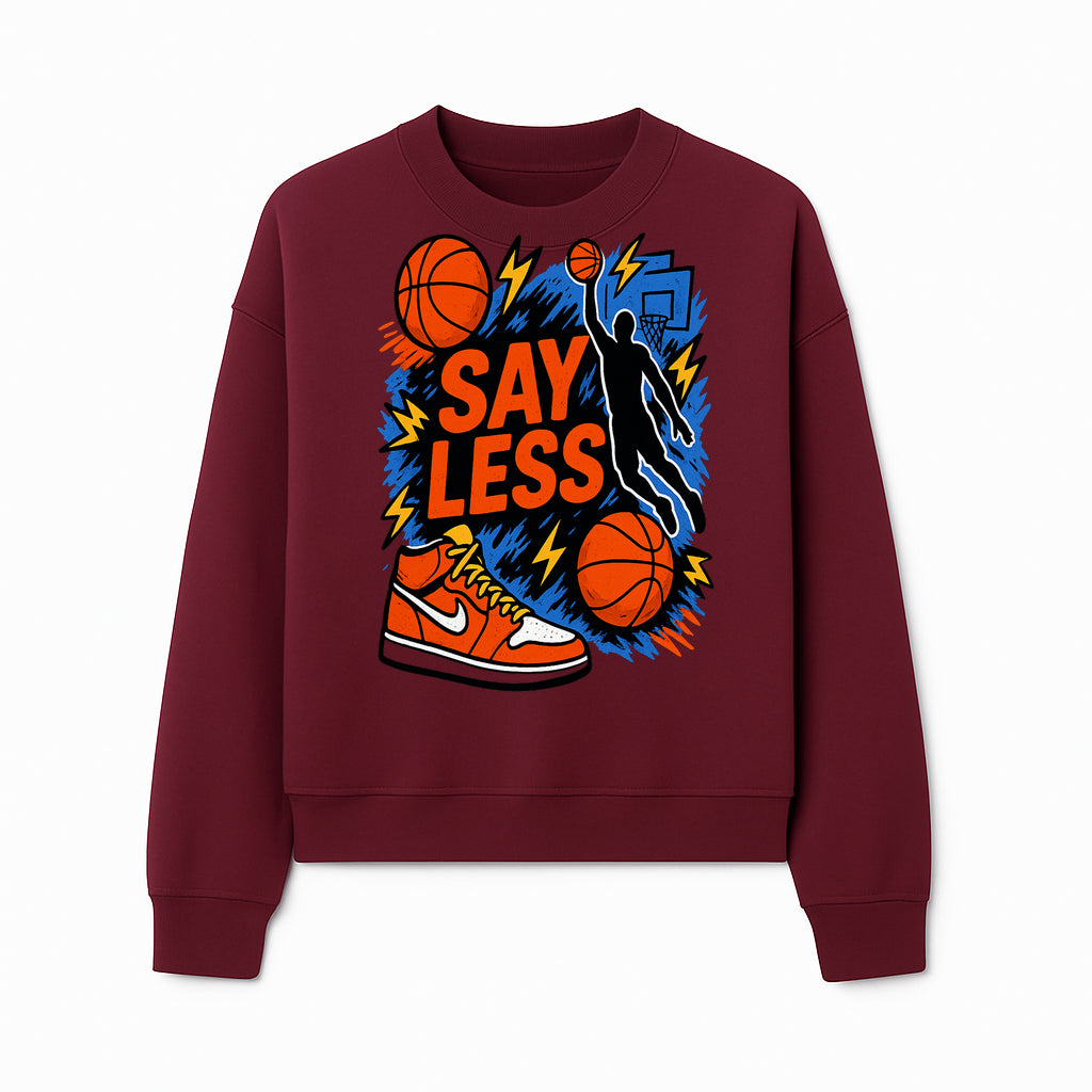 Basketball Say Less Graphic Tee with Slam Dunk Design and Nike Sneaker Art, Perfect for Sports Fans and Streetwear Enthusiasts - Sweatshirt