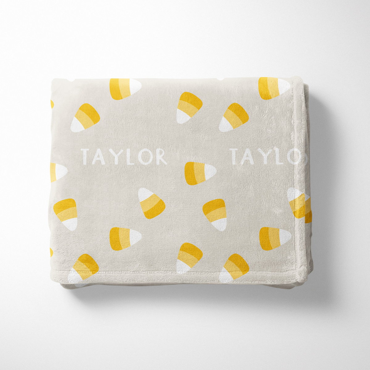 Candy Corn Halloween Name Blanket, Custom Name Blanket, Halloween Personalized Gift, Cute Halloween Gift