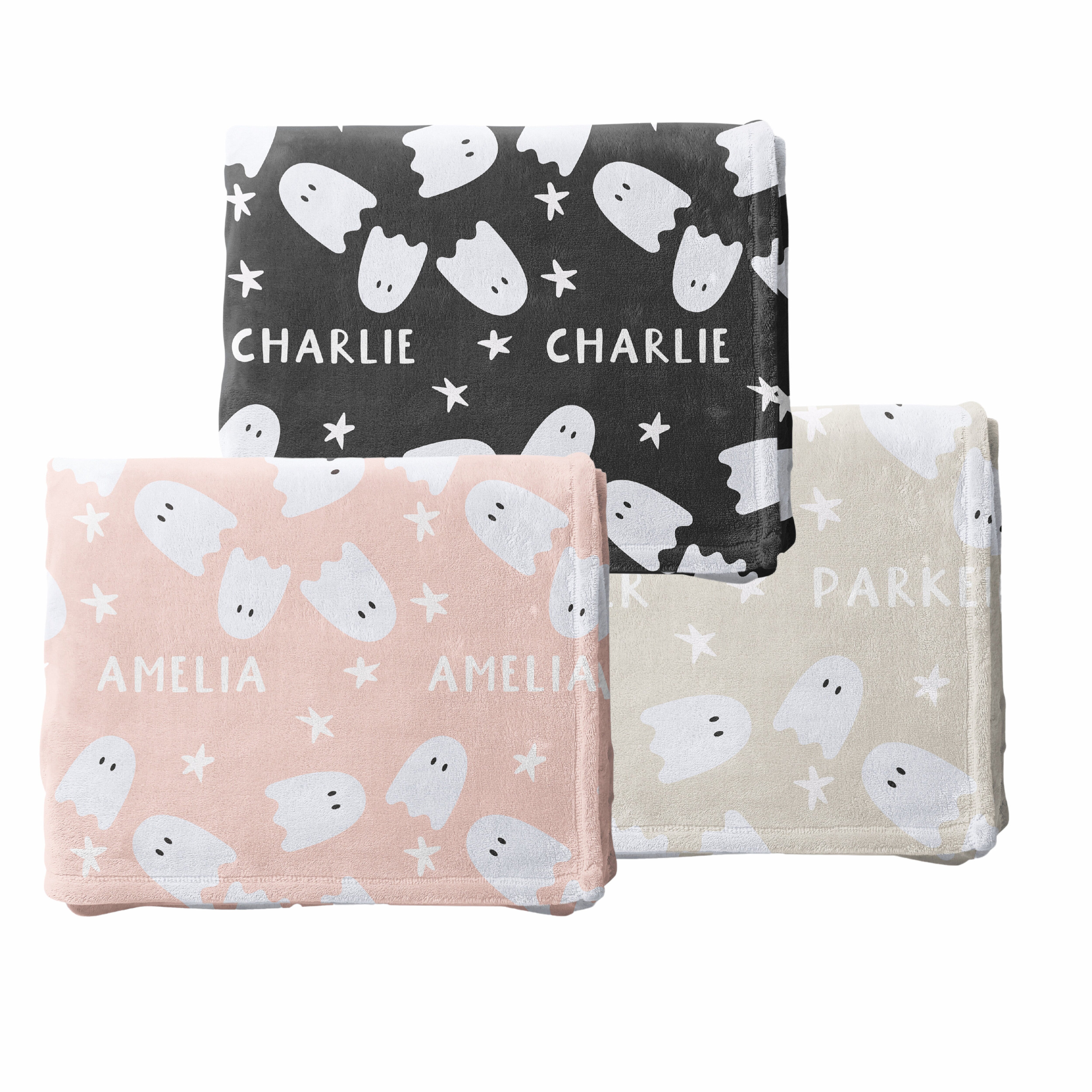 Ghost and Stars Halloween Name Blanket, Custom Name Blanket, Halloween Personalized Gift, Cute Halloween Gift, Halloween Blanket, Boy Girl