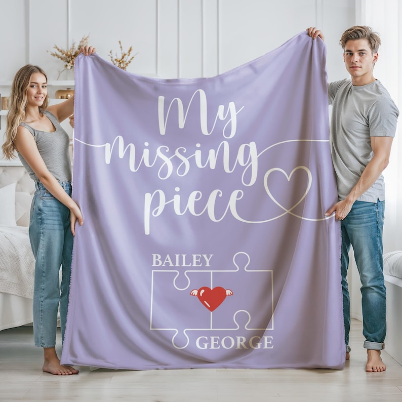 My Missing Piece Custom Valentines Day Gift, Couple Blanket, Valentine Snuggle Throw, Anniversary Gift, Gift for Girlfriend, Wifey Gift