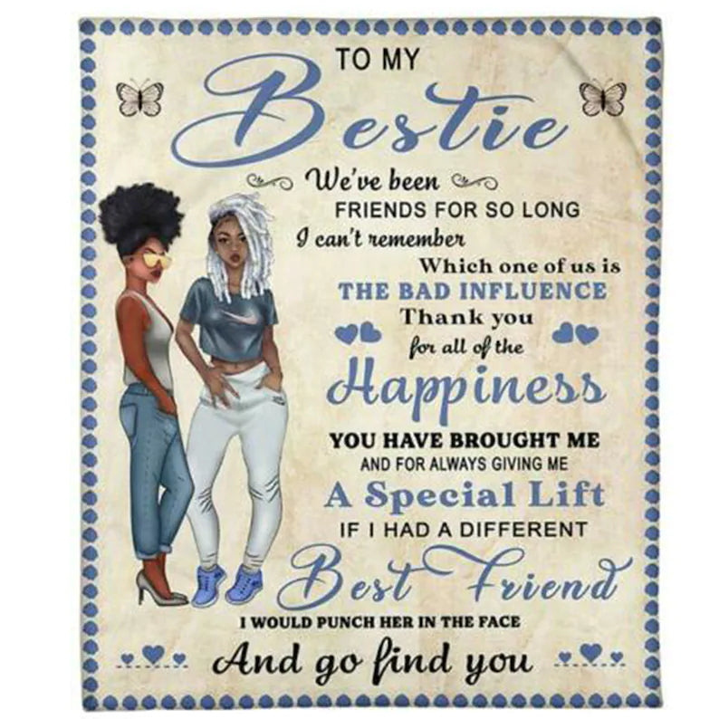 To My Friend Fleece Blanket I Can't Remember Which One Of Us Is The Bad Influence, Gift For Sister, Gift For Friend, Home Decor Bedding Couch Sofa Soft and Comfy