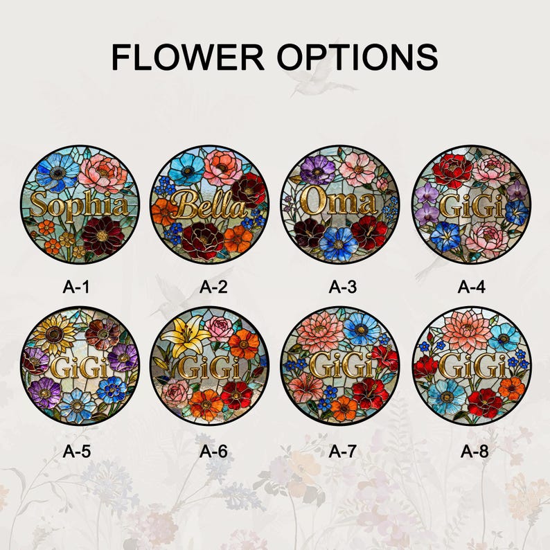 Personalized Stained Glass Sun Catcher, Custom Floral Name Sign, Hanging Window Decor, Gift for Mom Grandma, Mothers Day Gift