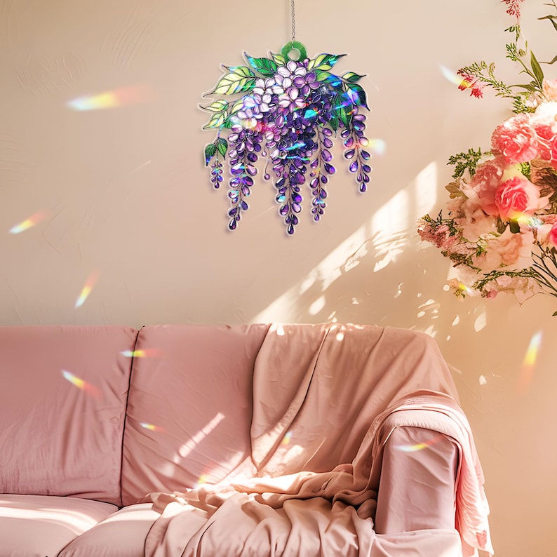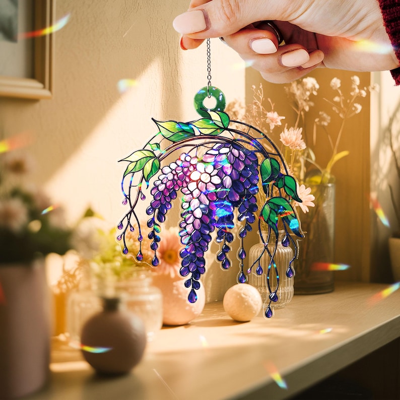 Sized at 6.4 inch and 7.85 inch , this captivating glass suncatcher effervesces with brilliance in the sunlight, adorned with a vibrant hummingbird and flowers in a kaleidoscope of hues. Every piece is meticulously hand-soldered and reinforced with zinc strips along the outer edge, ensuring its lasting strength. Thoughtfully, two secure hanging hooks are seamlessly incorporated at the top for effortless display.