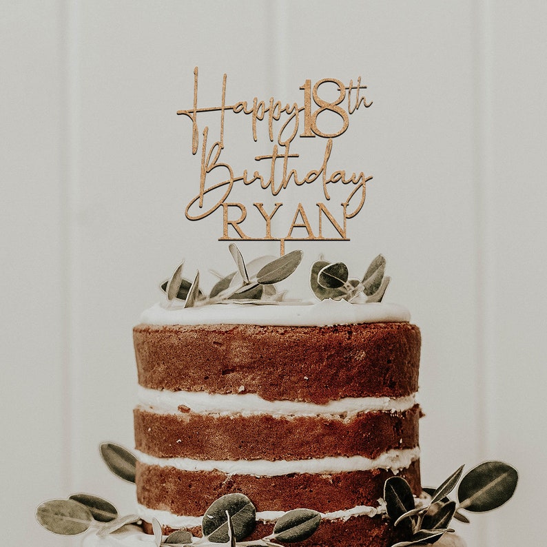 18th Birthday Cake Topper, Happy 18th Birthday Cake Topper, Personalized Birthday Party Cake Toppers with Name, Modern Birthday Decor