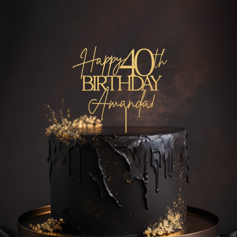 Personalized Happy Birthday Cake Topper with Name, Birthday Cake Toppers, Gold Happy Birthday Cake Topper, Happy 30th 40th 50th Birthday