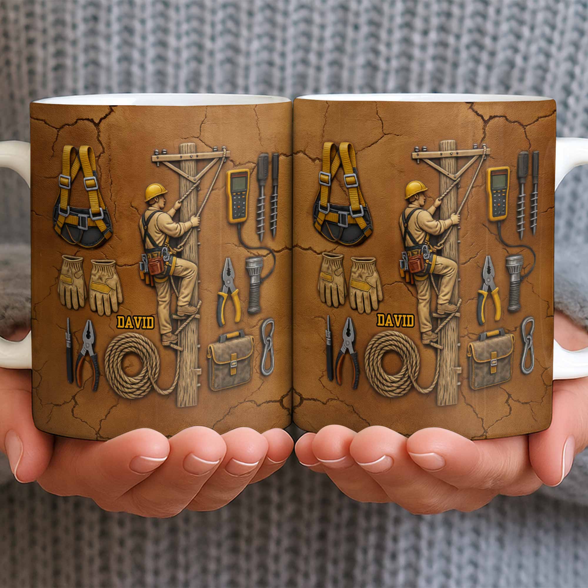 Personalized Mug With Essential Tools And Helmet, Coffee Mug, Gift for Dads and Workers