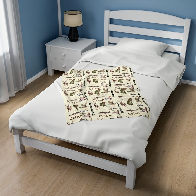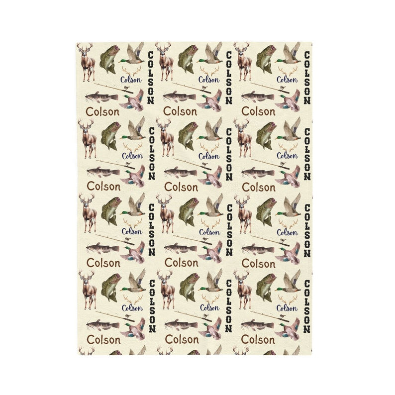Personalized Name Hunting Fishing Blanket | Toddler Bass Whitetail Deer Catfish Duck Plush Blanket | Cuddly Kid Blanket | Baby Shower Gift