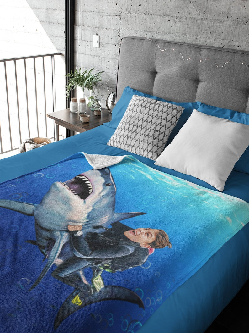 Personalized Shark Custom Velveteen Plush Blanket, Custom Shark Gift, Shark Birthday Gift, Great White Shark, Personalized Blanket for Kids