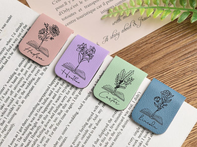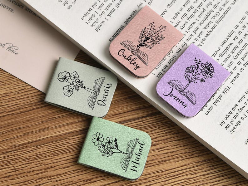 Birthday Flower Bookmark with Name, Personalized Leather Bookmark, Magnetic Bookmark, Gifts for Readers, Custom Bookmark for Her