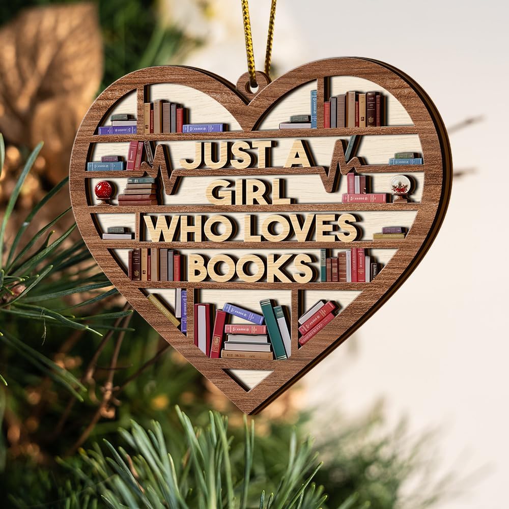 Book Ornament, Layers Wooden Bookshelf Book Lovers Gifts Christmas Tree Decor, Just A Girl Who Loves Books, Book Club Gifts, Librarian Ornament, Gifts for Women, Coworker, Teacher, Reading Lovers