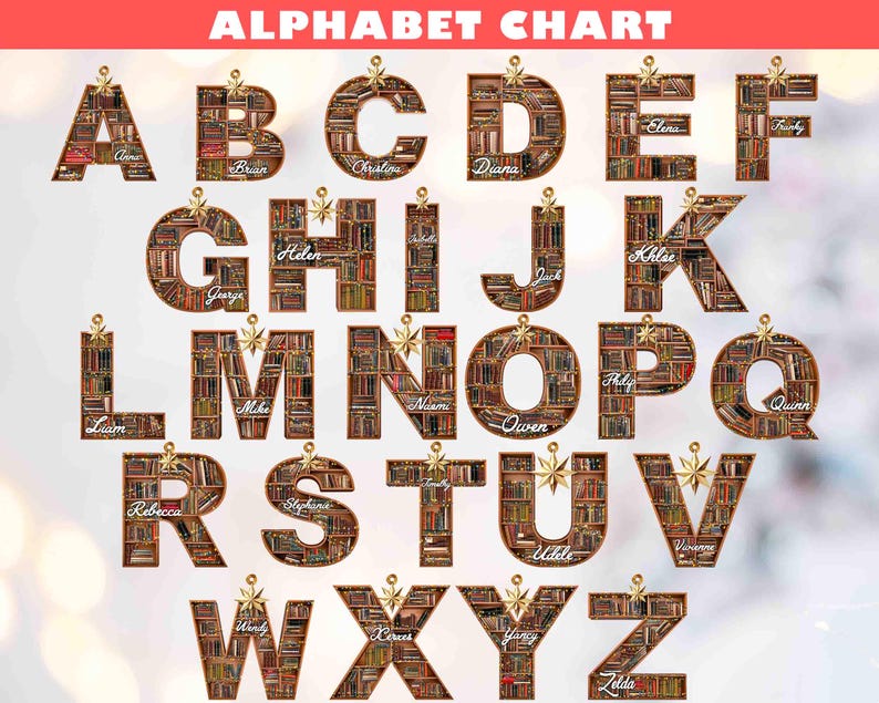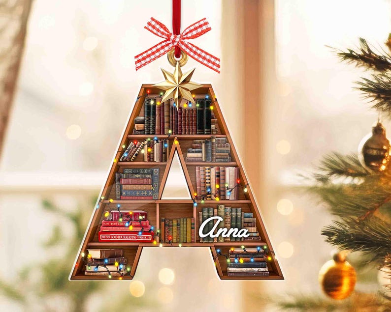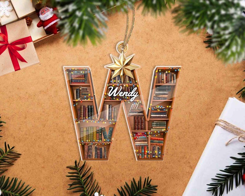 Custom Name Christmas Book Tree Ornament, Personalized Letter Name Ornament, Bookish Ornament, Christmas Book Ornament, Book Lover Gift