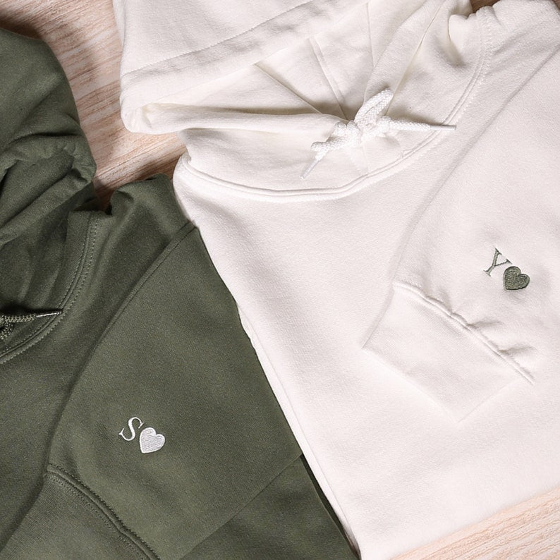 Custom Embroidery Initial Heart Hoodie, Personalized Valentines Sweatshirt, Embroidered Couples Outfit, Wedding Party Gift, Engagement Gifts