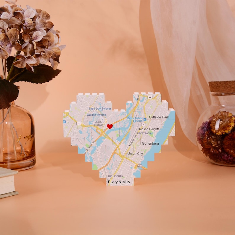 Map Print Building Block, Photo Puzzles Blocks with Location, Friend Long Distance Gift, Couple Engagement, Anniversary Gift, Valentine Gift