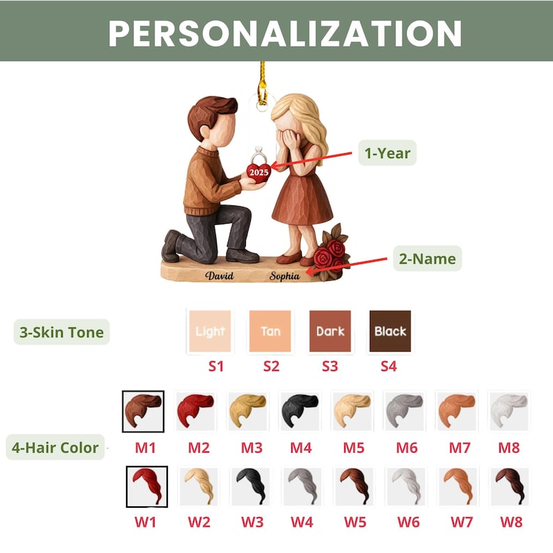 Personalized Couple Marriage Proposal 2D Flat Ornament, Custom She Said Yes Acrylic Ornament, Engagement Gift For Couples, Romantic Keepsake