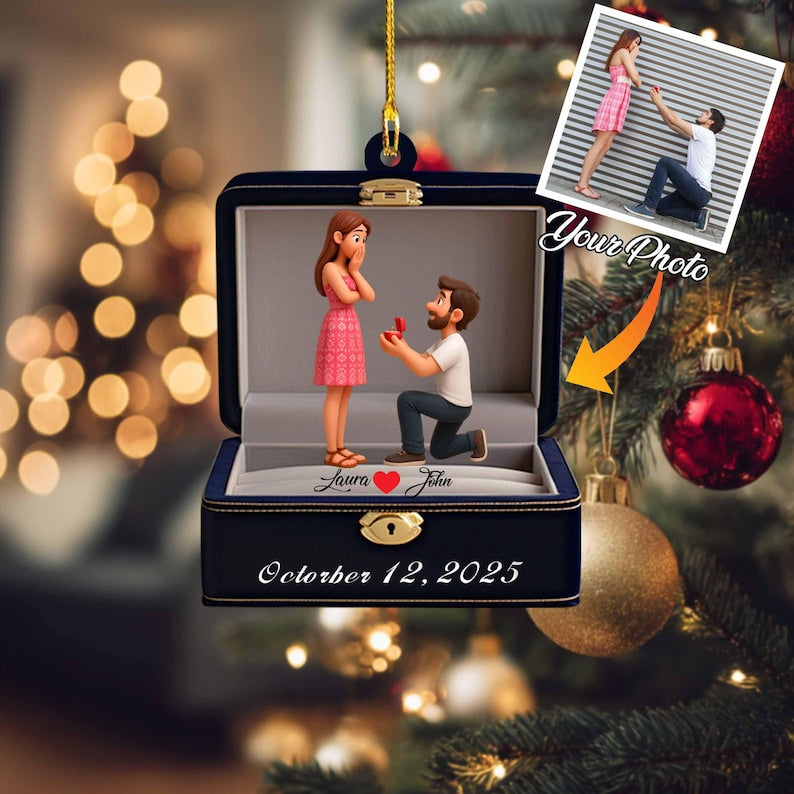 Personalized Engagement Ornament | First Christmas Engaged Acrylic Keepsake, Custom Proposal Photo Gift for Couples, Wedding Decoration