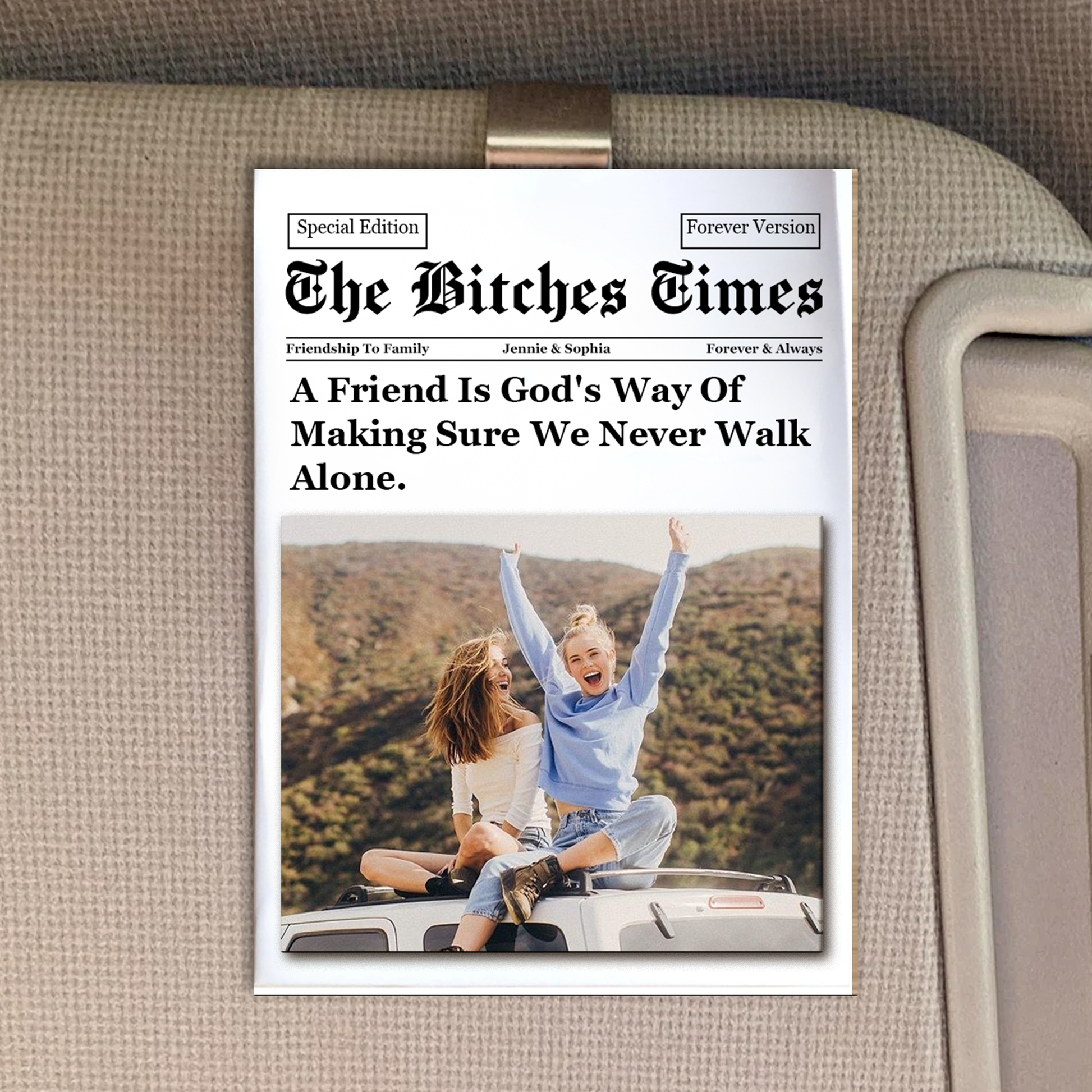 A Friend Is God's Way Of Making Sure We Never Walk Alone - Personalized Photo Wooden Car Visor Clip