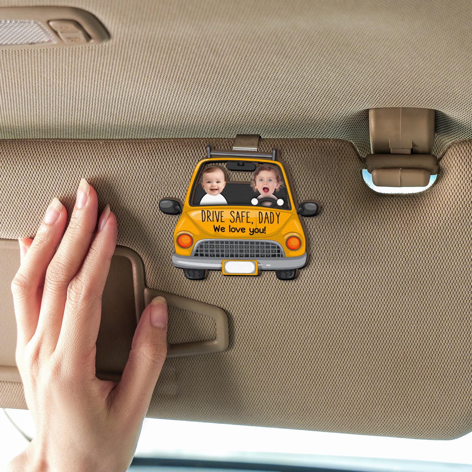 Drive Safe Daddy, Personalized Photo Wooden Car Visor Clip, Custom Funny Face With Kid, Funny Car Gift, Cute Car Decor, Father Day Gift