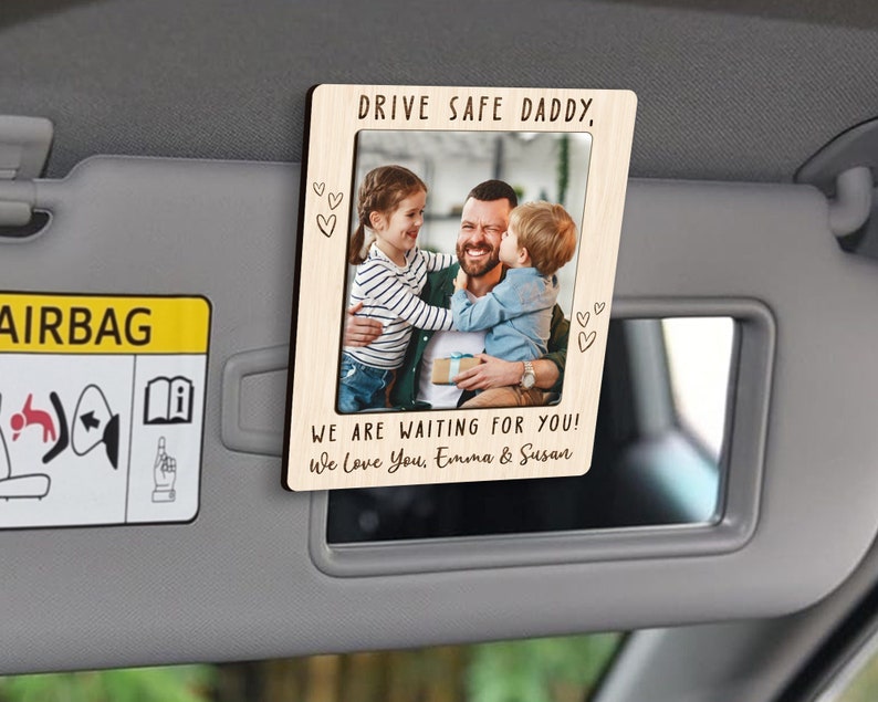 Personalized Dad Picture Frame Car Visor Clip, Drive Safe Daddy Car Visor Clip, Dad Gift from Kids, Father's Day Gift from Daughter