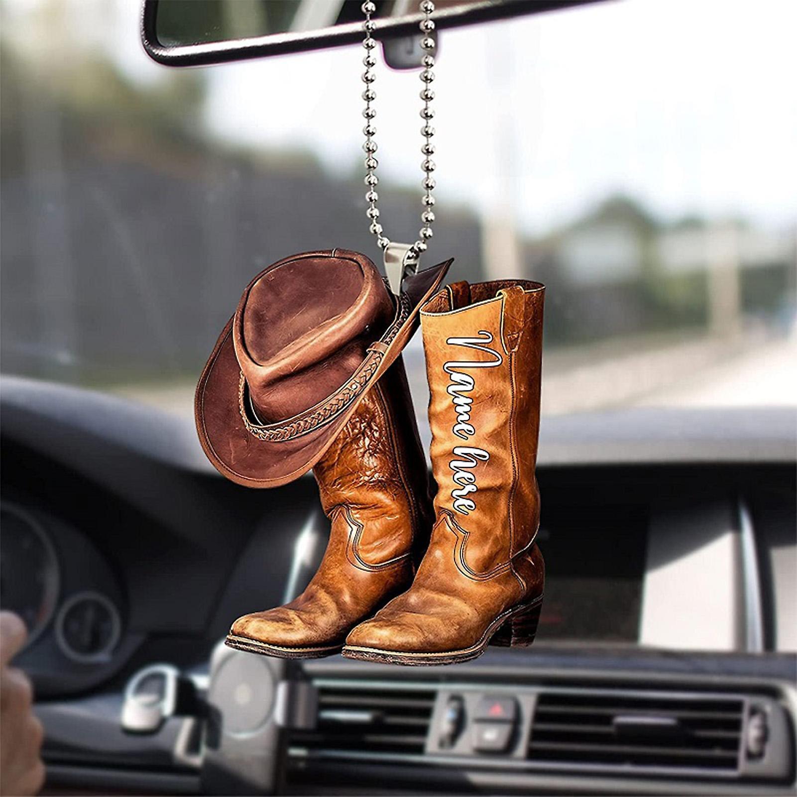 Cowboy Boots Hangings Ornament | Personalized Car Rearview Mirror Pendant | Acrylic Saddle Keychain Hangings Car