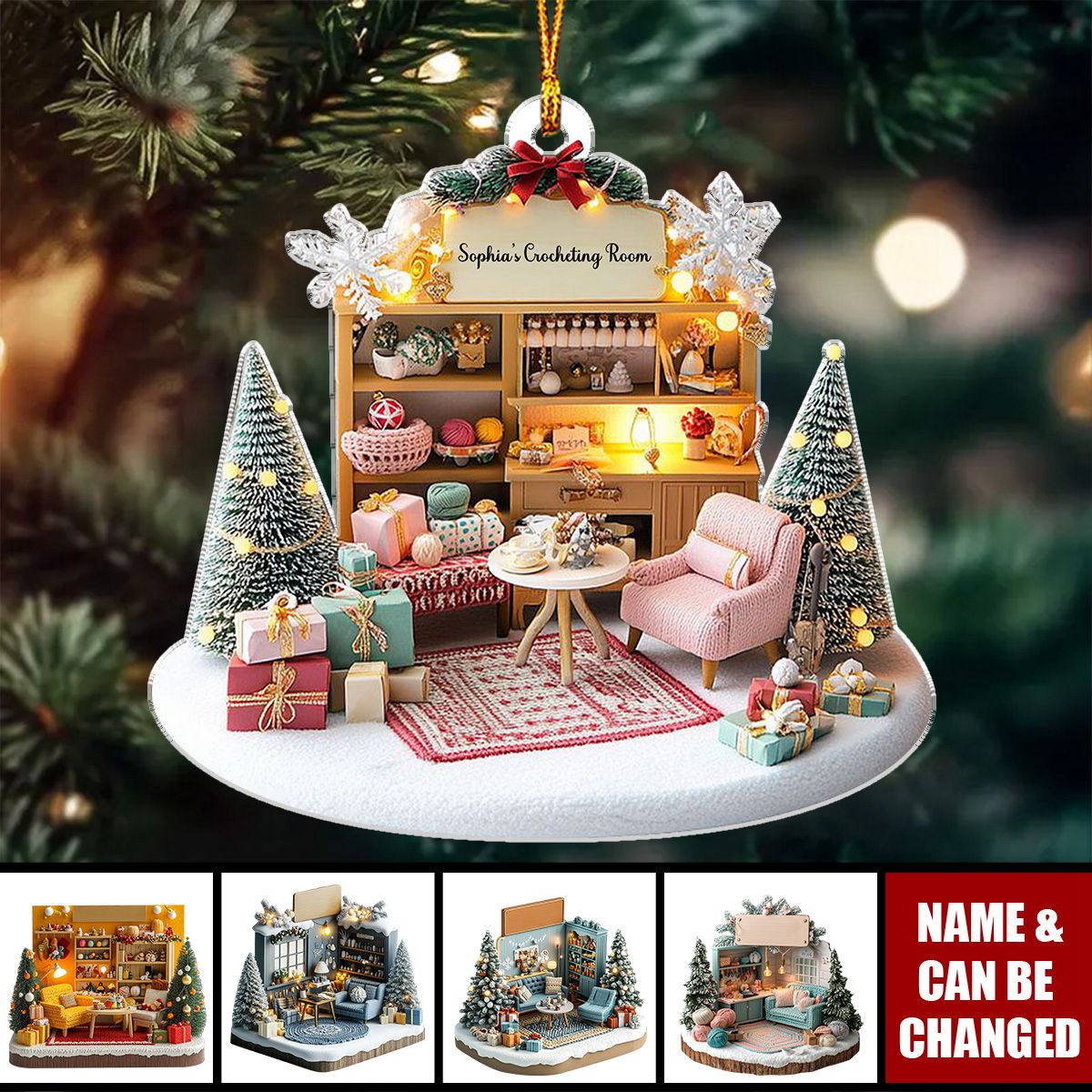 Crocheting Room - Personalized Acrylic Ornament - Christmas For Crochet Girls