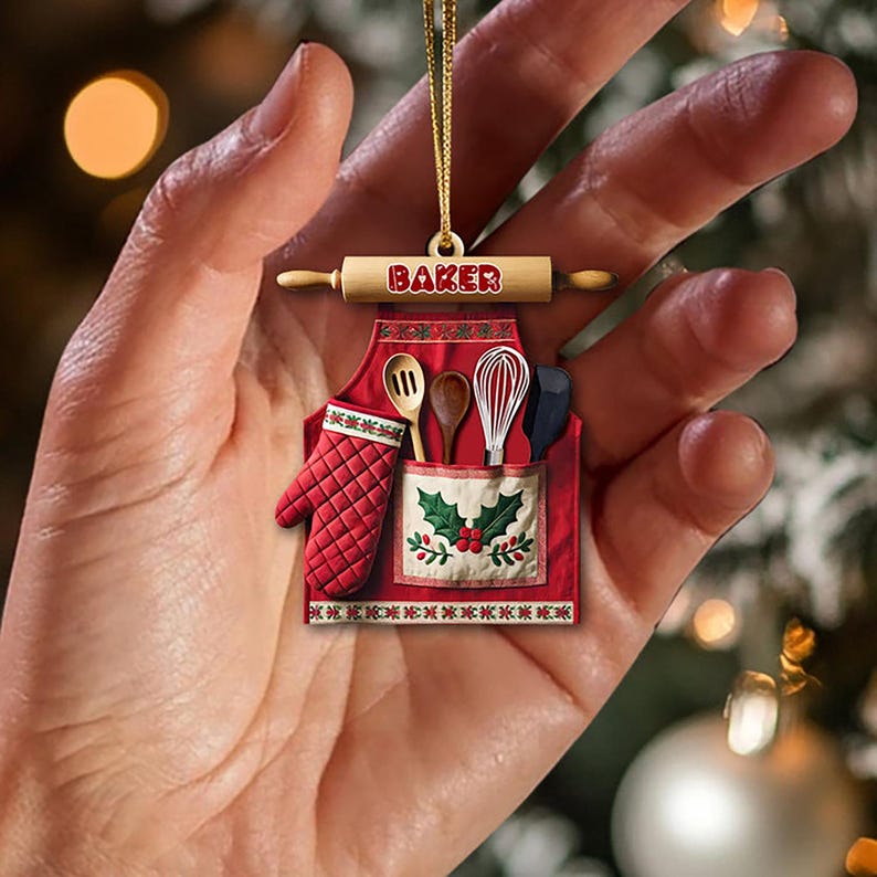 Custom Baker Ornament, Baking Christmas 2D Flat Acrylic Ornament, Cooking Baking Gift, Baking Lover Gift, Gift For Baking Lover,Baking Apron