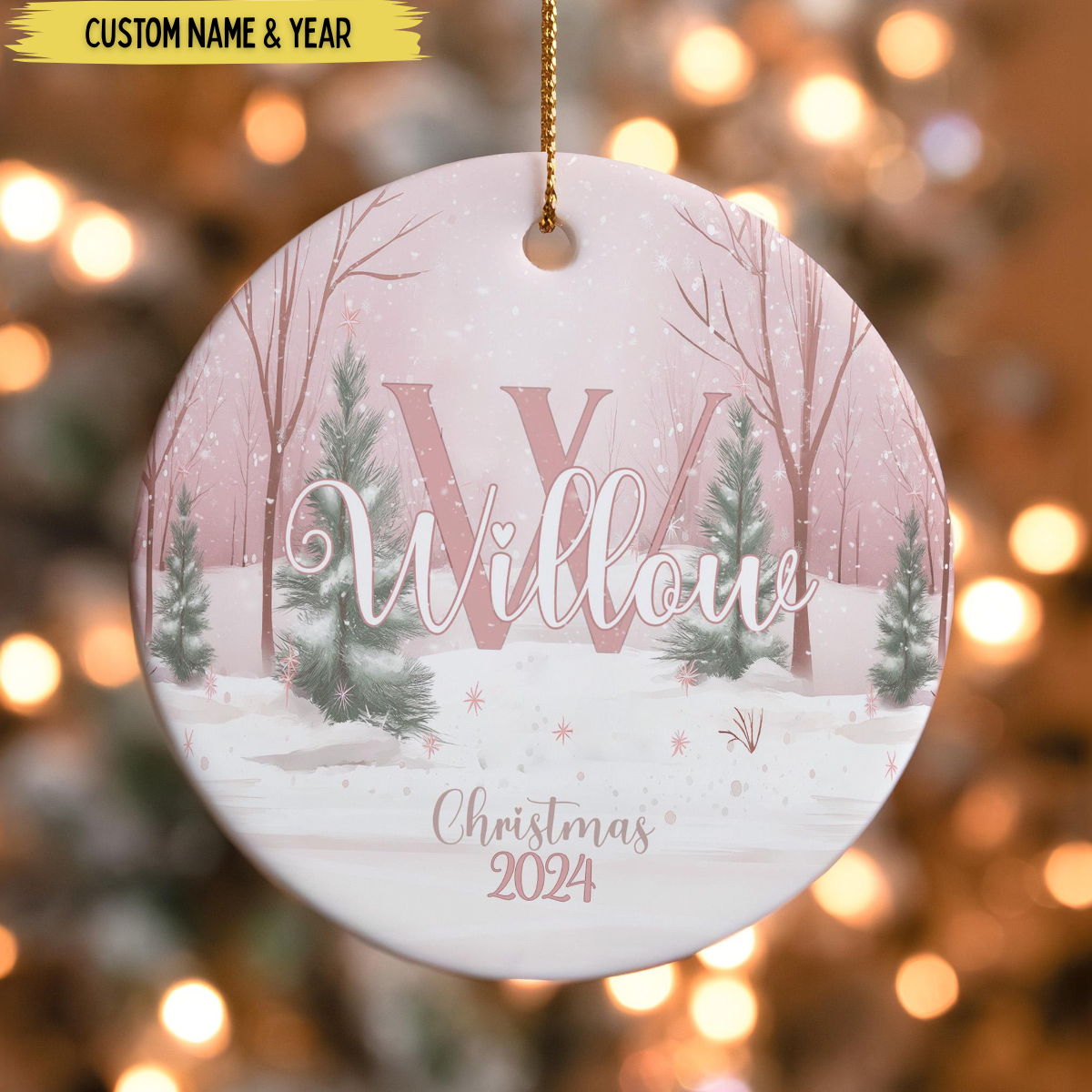 Custom Initial Christmas Ornament, Personalized Name Ornaments, Pink Gift Ornament 2025 Family Initials Christmas Ornament, Keepsake Gift