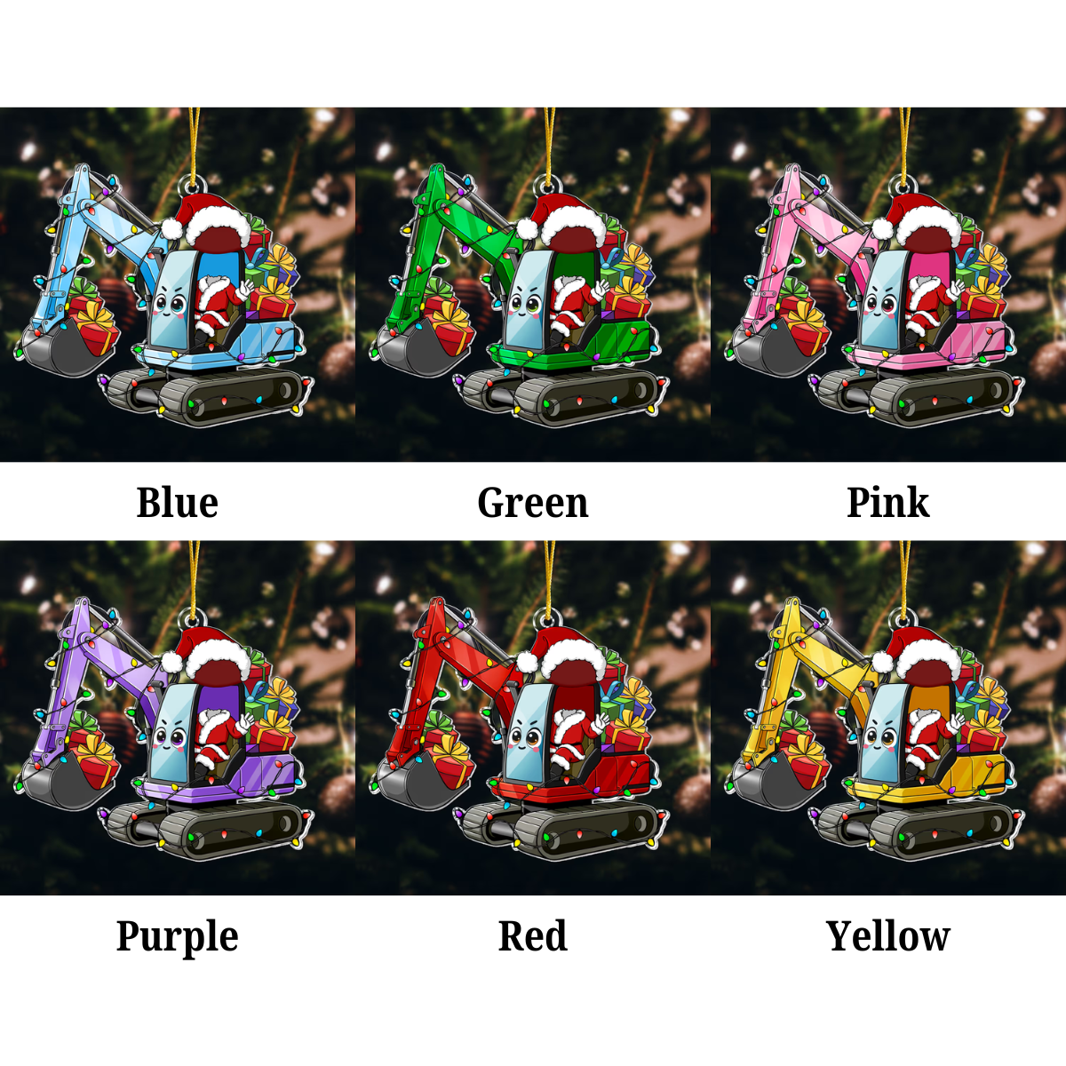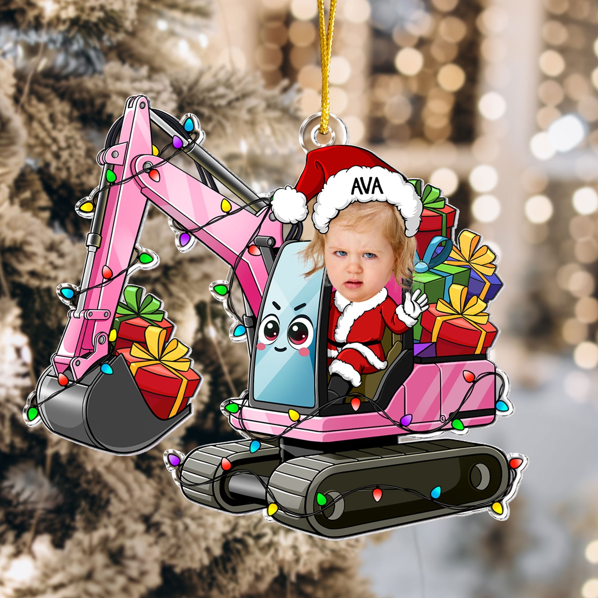 Custom Kid Face Cartoon Excavator - Personalized Acrylic Shaped Ornament - Christmas Gift For Kids