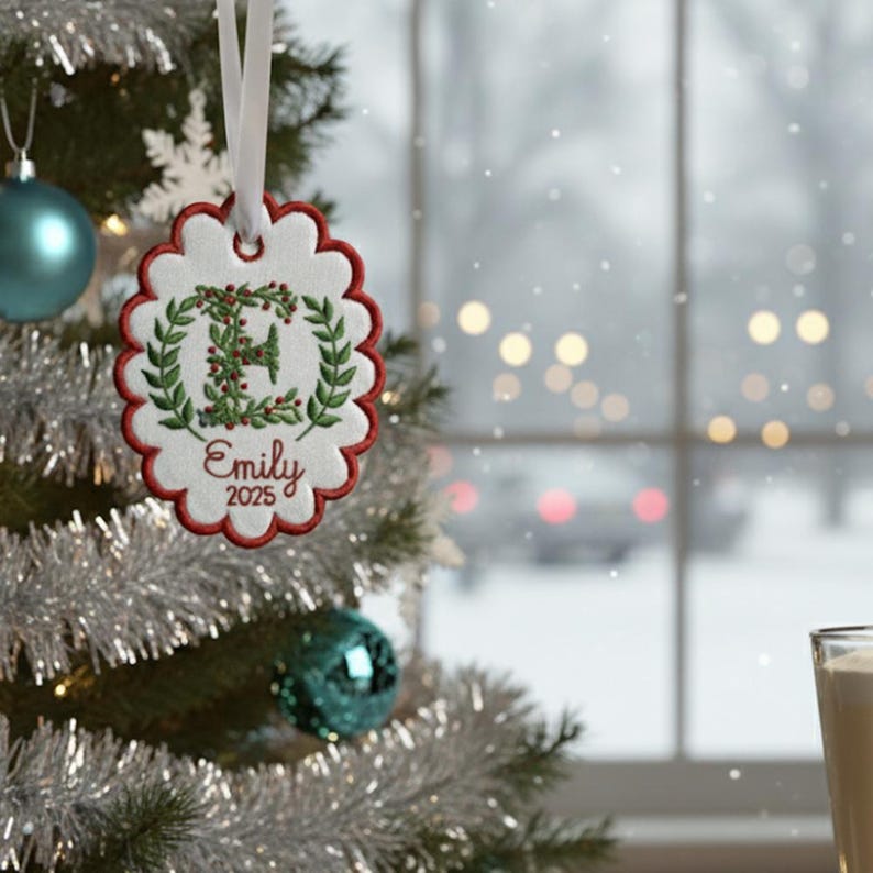 Custom Letters Christmas Initial Scalloped Oval Embroidered Christmas Ornament