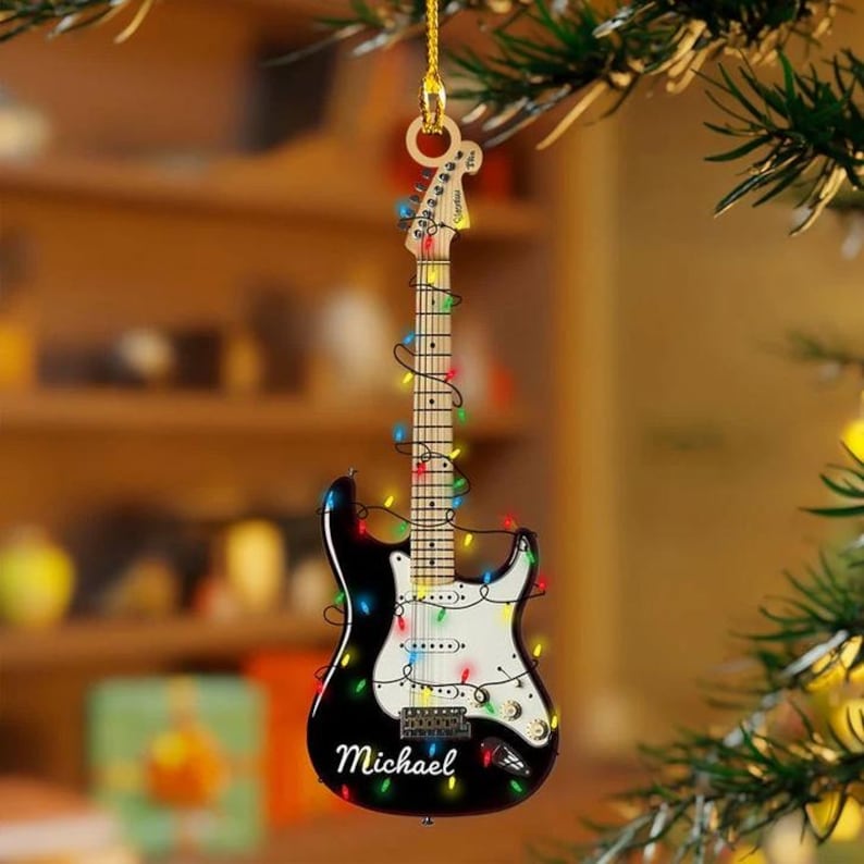 Custom Name Classic Guitar Christmas 2D Flat Acrylic Ornament, Christmas Tree Hanging Decor, Custom Guitar Lover Ornament,Guitar Lover Gift