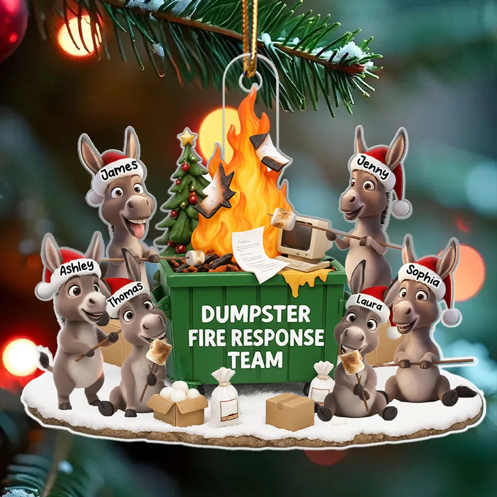 Funny Donkey Dumpster on Fire Response Team - Personalized Acrylic Ornament - Funny Holiday Gift for Coworkers