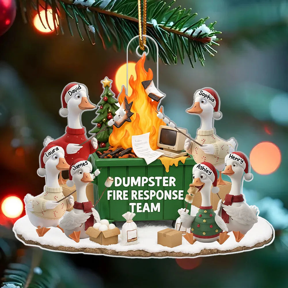 Funny Goose Dumpster on Fire Response Team - Personalized Acrylic Ornament - Funny Holiday Gift for Coworkers