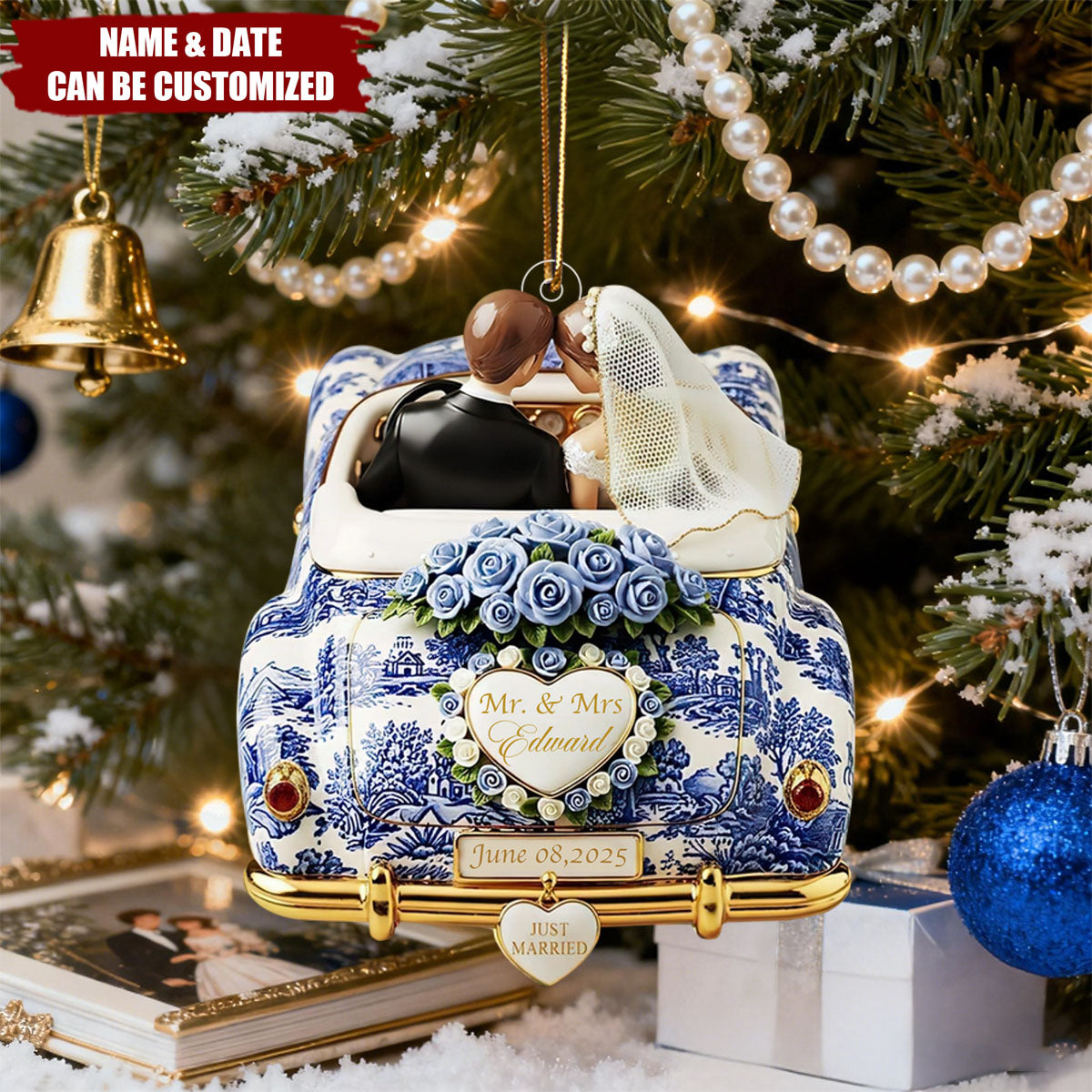 Just Married Toile de Jouy - Personalized Acrylic Ornament - Wedding Gifts For Couple