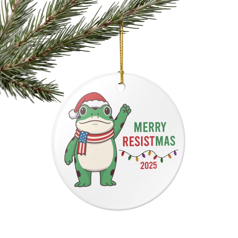 Merry Resistmas Frog Ornament, Funny Political Protest Gift, Portland Frog Meme Christmas Decor, Freedom Frog Ceramic Keepsake