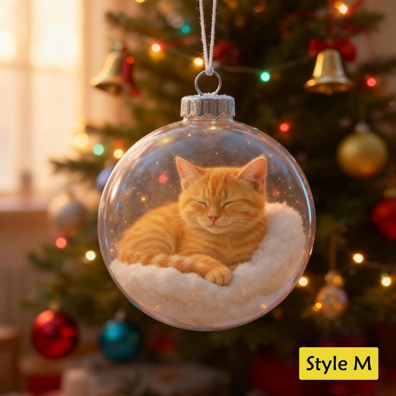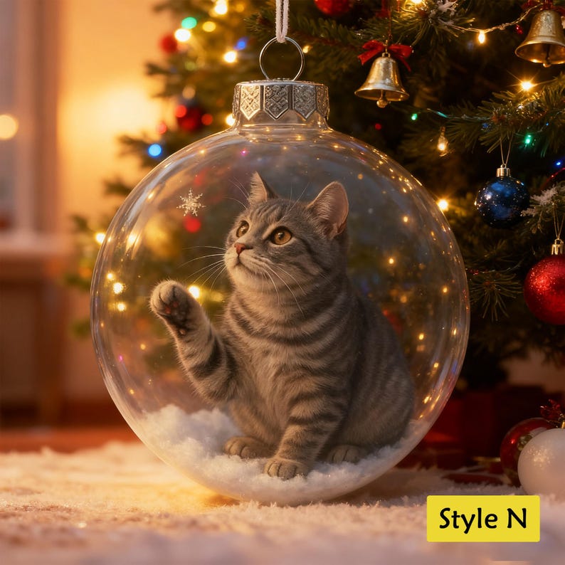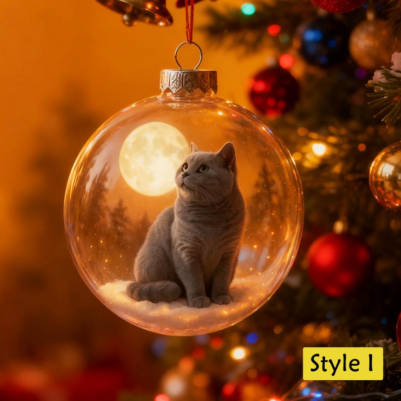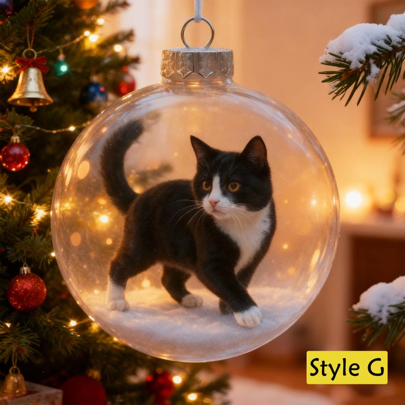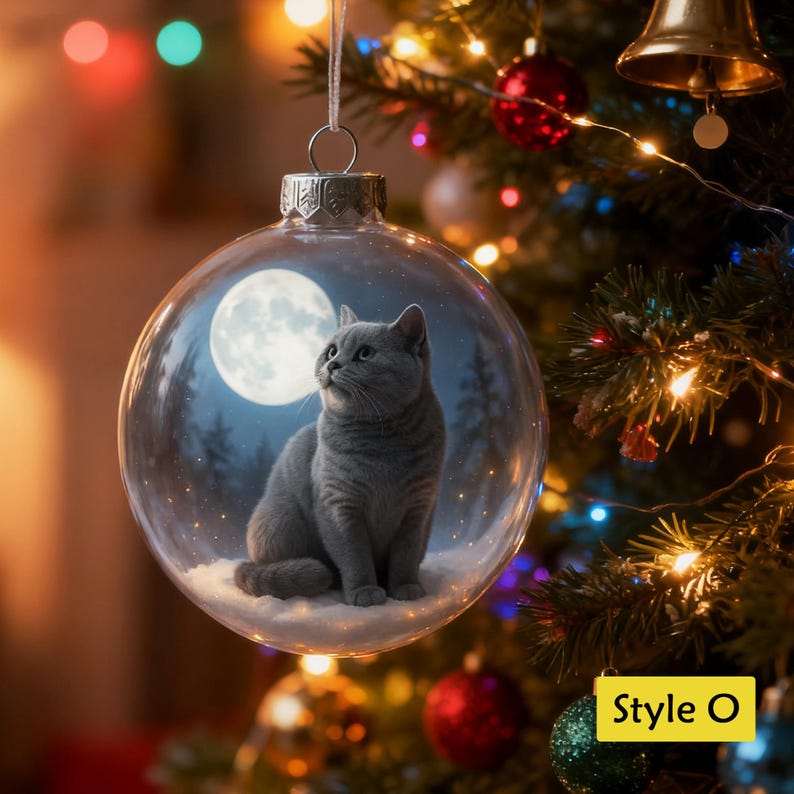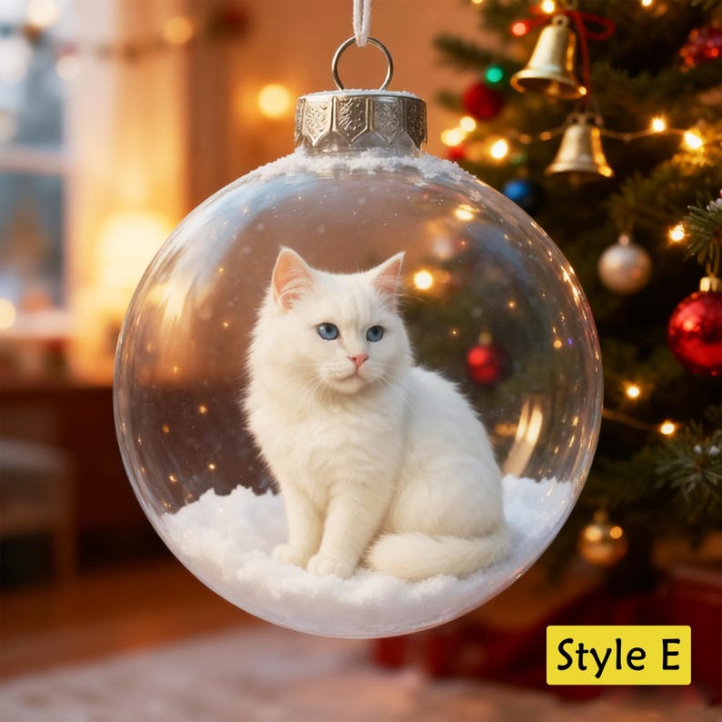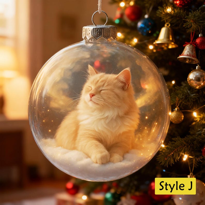 Personalized 2D/3D Animals Xmas Acrylic Ornaments-Cat/Fox/Deer/Cow/Bunny/Bear/Squirrel,Christmas Balls with Snow Scene,Christmas Tree Decor