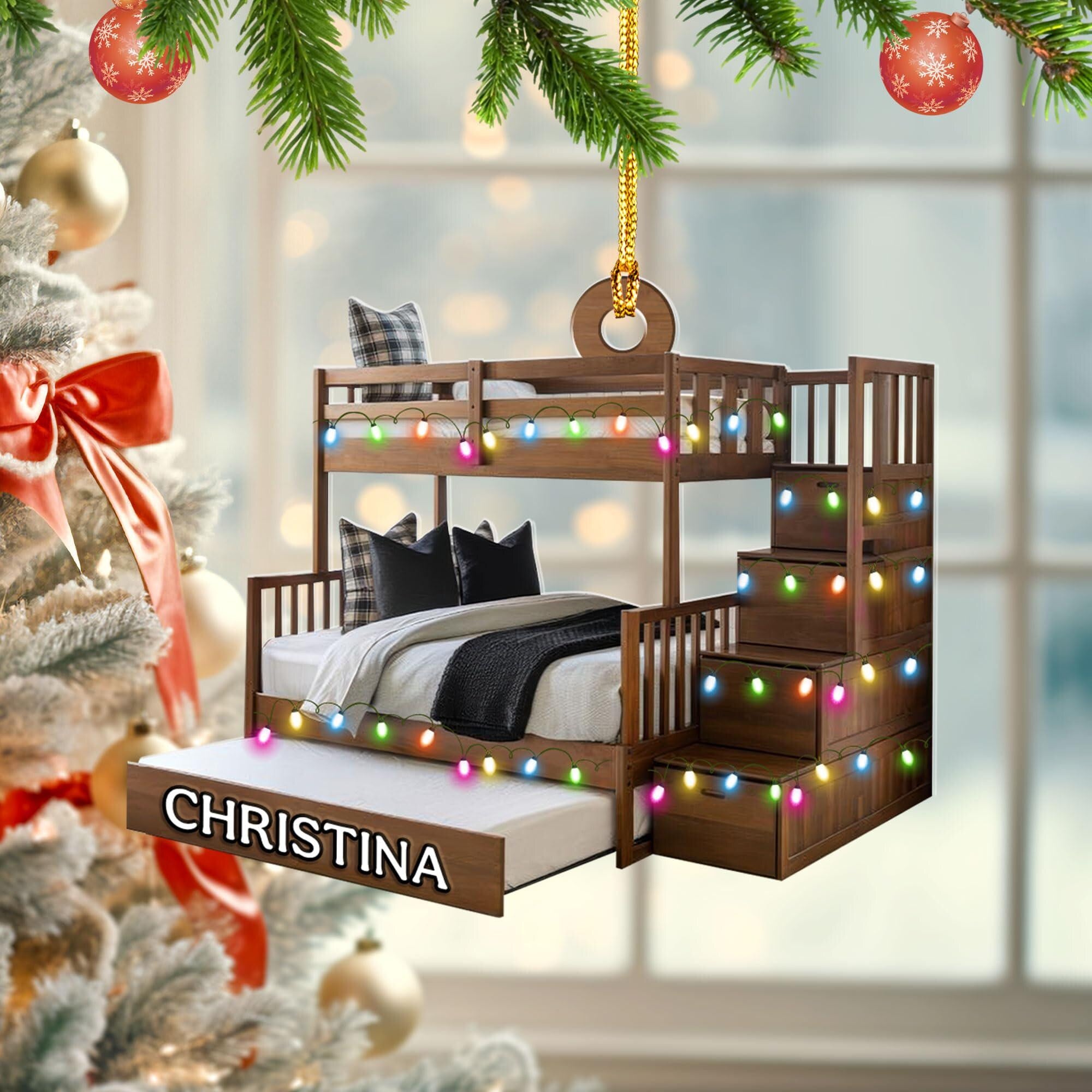 Personalized 2D Bunk Bed Ornament, Twin Over Twin Christmas Decor, Gift For Twins