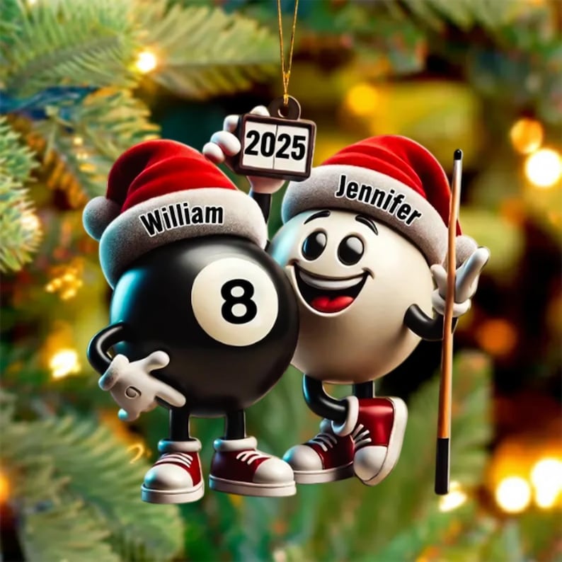 Personalized 2D FLAT Acrylic Pool Ornament, Custom Name 8 Ball & Cue Ball Christmas Gift, Billiard Lover Decor for Couples, Funny Holiday