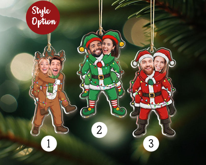 Personalized Couple Photo Ornament, Custom Funny Face For Husband Wife, Photo Gift For Christmas, Anniversary Wedding Gift