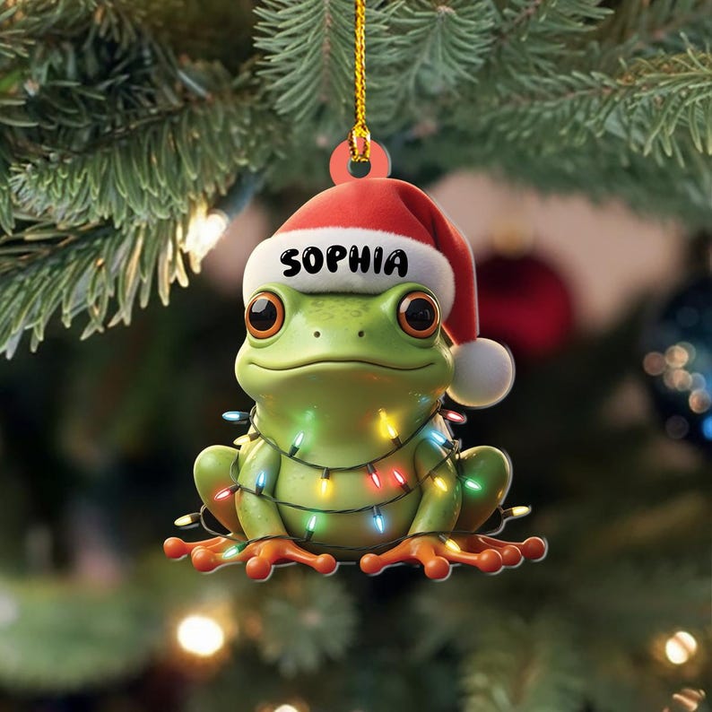 Personalized Frog Christmas Ornament, Cute Frog Ornament, Custom Christmas Frog Keepsake, Funny Animal Ornament, Frog Lover Ornament Gift