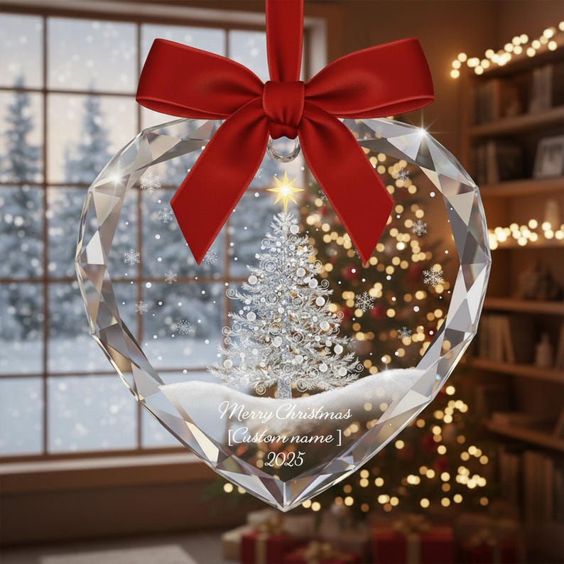 There’s a special kind of magic that happens when the Christmas lights reflect off crystal glass — shimmering, warm, and full of love. This Personalized Glass Heart Ornament captures that magic perfectly. Whether it’s the name of your family, a loved one, or a cherished memory from 2025, this ornament becomes a radiant reminder of joy and togetherness every holiday season.